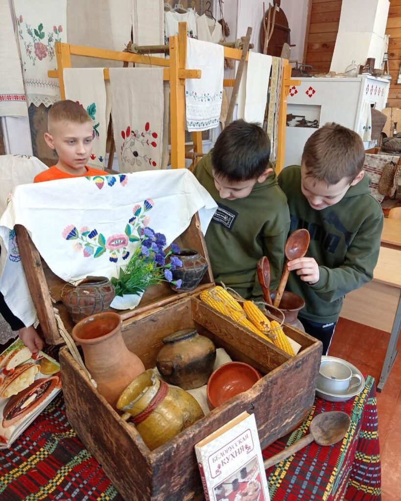 У шосты школьны дзень удзельнікі гуртка “Краязнаўства” прынялі ўдзел у стварэнні этнаграфічнай экспазіцыі “Беларуская кухня”.
